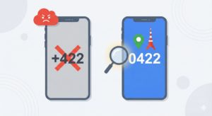 「+422」と「0422」の違いは、文字にしてしまえば明確ですが、実際のスマートフォンの小さな画面では見落としてしまいがちです。