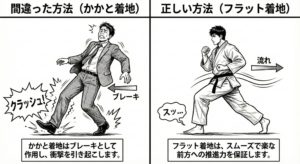 この場合もフラット着地とみぞおち意識が役立ちます。