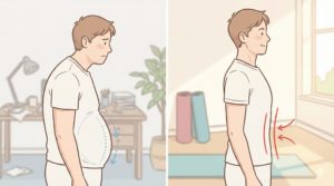 1日合計で5分も意識できれば、数週間後にはベルトの穴が1つ変わるほどの変化が現れるでしょう。