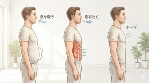 正しいドローインの極意は、「お腹は凹ませたまま、呼吸は止めない」ことにあります。